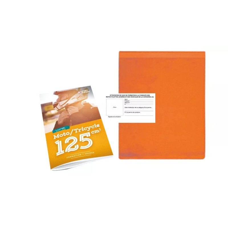 Kit complet avec attestation cartonnée pour la formation 7 heures moto. Outil indispensable pour les auto-écoles.