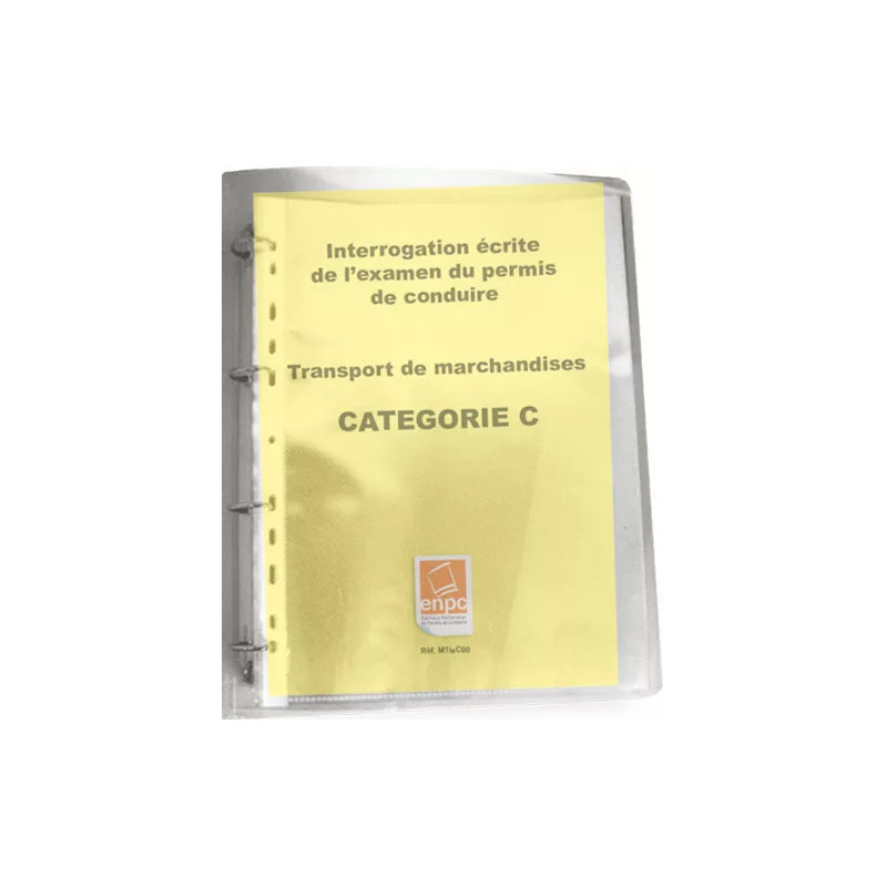 Le classeur avec fiches d’interrogations écrites C regroupe les fiches officielles dans un support rigide et pratique. Conçu pour les formateurs et candidats, il facilite la révision du permis poids lourd.