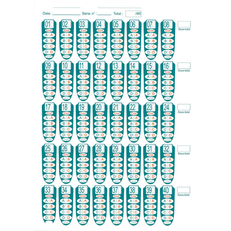 Les Feuilles réponses Euclide sont spécialement adaptées aux dispositifs de correction automatisée Euclide. Idéales pour les sessions de formation ou d’examen, elles offrent une mise en page optimisée et un repérage rapide.