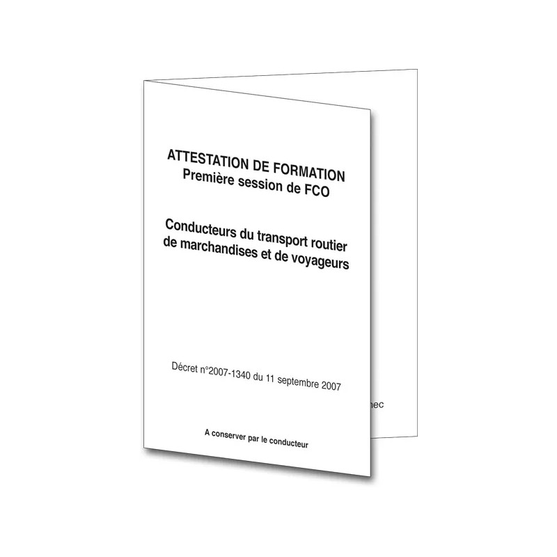 Les Attestations 1ère session FCO valident la participation à la formation continue obligatoire des conducteurs. Conditionnées par 20, elles facilitent la gestion administrative des centres agréés.
