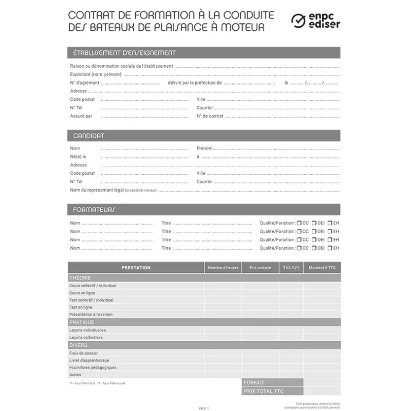 Le Contrat de Formation – Conduite des Bateaux de Plaisance à Moteur est un document obligatoire remis aux élèves en formation. Il encadre la prestation du centre de formation et précise les conditions d’enseignement.