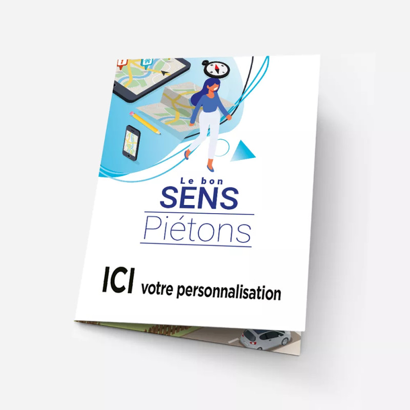 Le dépliant Le bon sens piéton personnalisé reprend les messages éducatifs du dépliant standard tout en intégrant votre logo et vos coordonnées. Idéal pour les actions locales de prévention.