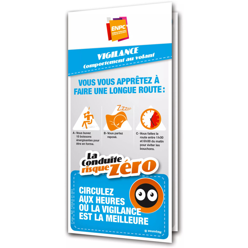 Le Dépliant Risque Zéro – Vigilance sensibilise aux effets de la distraction, de la fatigue et de la baisse d’attention. Illustré de cas concrets, il aide à mieux comprendre les risques liés à la perte de concentration sur la route.