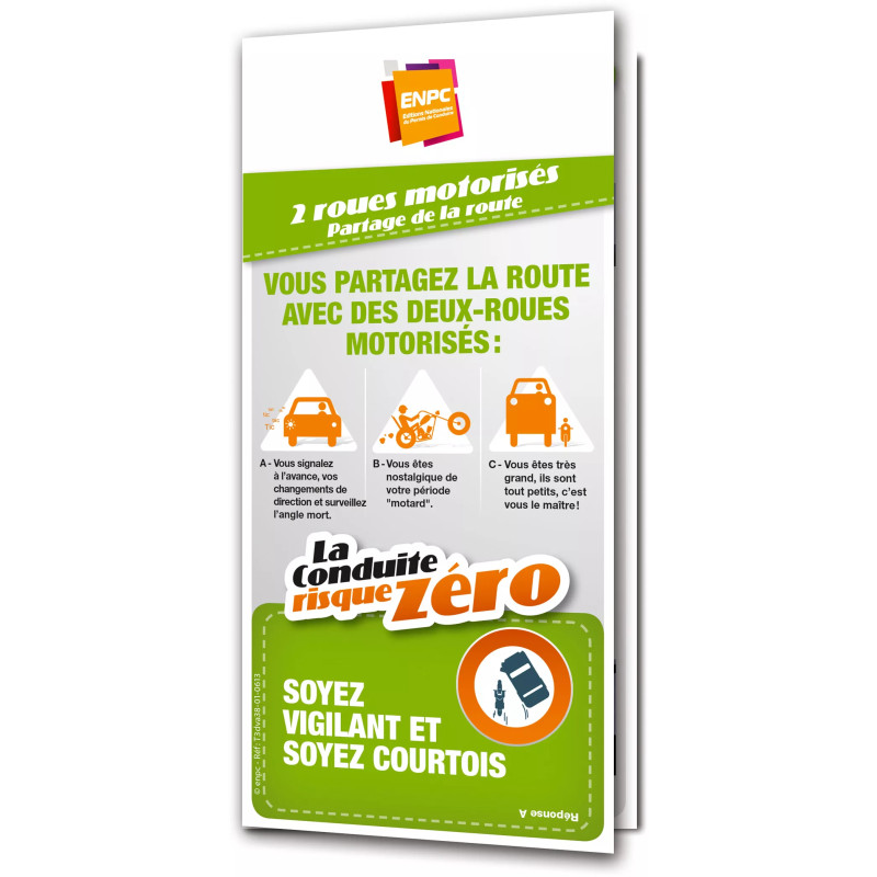 Le Dépliant Risque Zéro – Deux-roues motorisés traite des spécificités de la conduite moto et scooter : visibilité, équipements, trajectoire et partage de la route. Il favorise une conduite plus sûre et prévoyante.