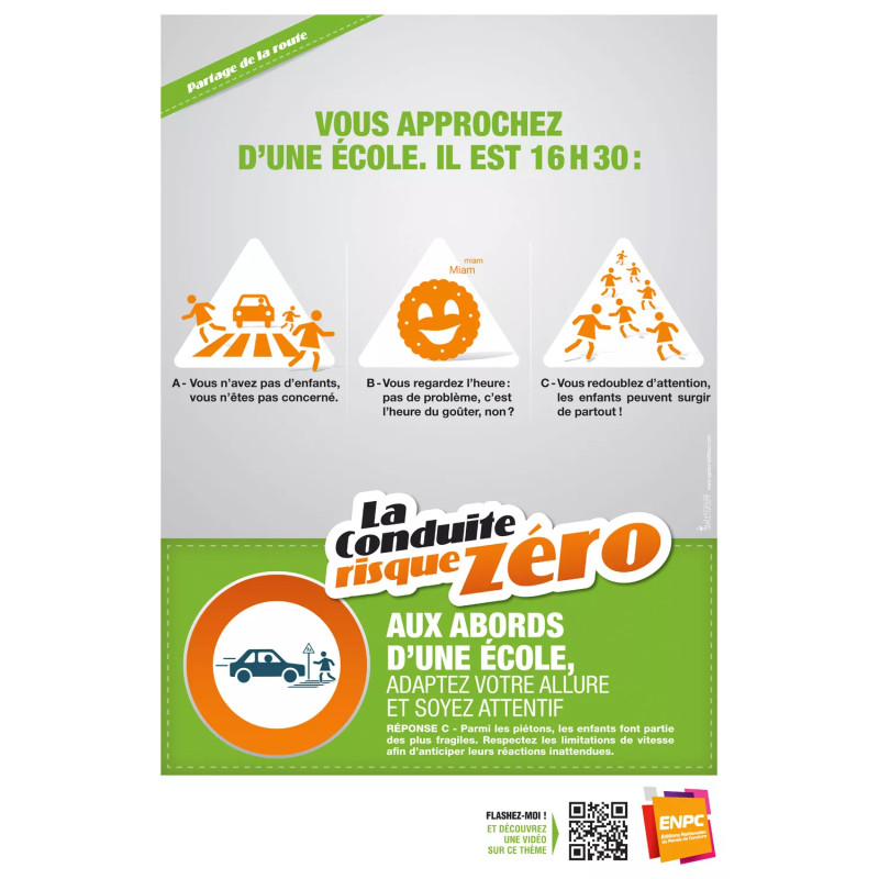 L’Affiche Risque Zéro – Usagers vulnérables sensibilise les conducteurs à la protection des piétons, cyclistes et utilisateurs de trottinettes. Un support efficace pour promouvoir le partage de la route et la vigilance.