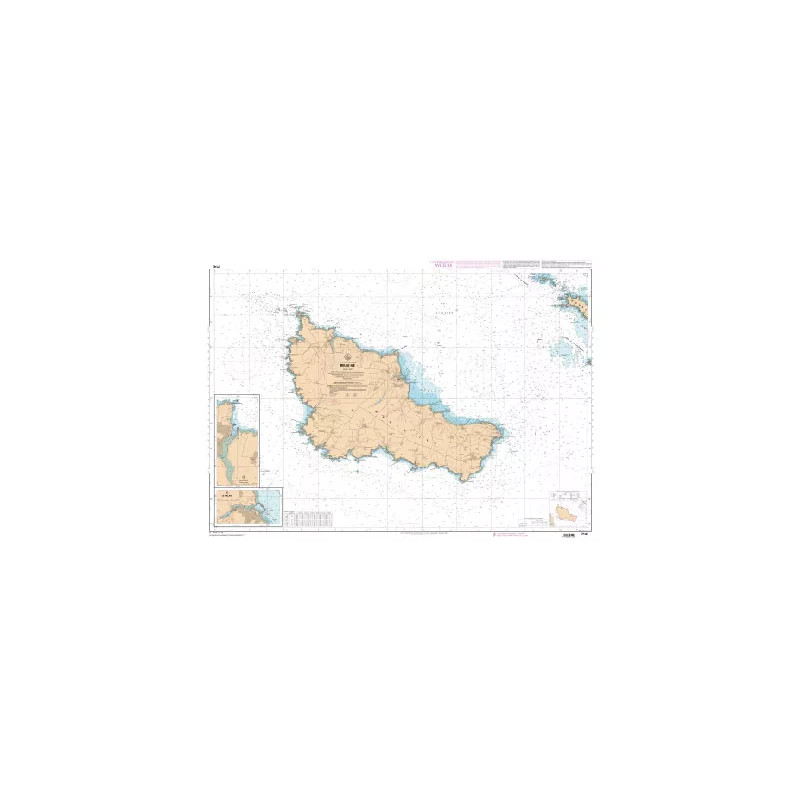 La carte marine SHOM Belle-Île couvre l’ensemble de l’île et ses zones de navigation environnantes. Détaille les profondeurs, ports et mouillages.