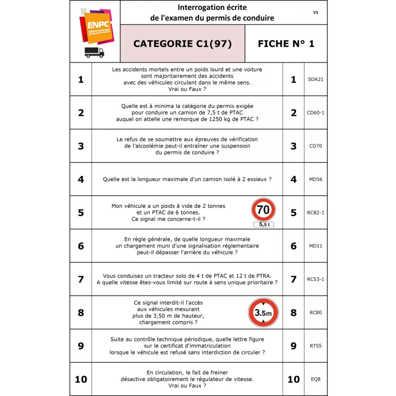 Fiches d’interrogations officielles pour permis C1/C1E.