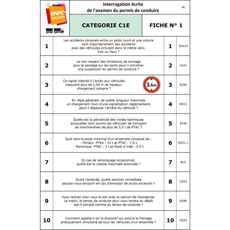 Les fiches d’interrogations écrites C1E permettent aux candidats de s’entraîner aux questions réglementaires du permis C1E. Elles couvrent les thématiques clés et facilitent la mémorisation avant l’examen.