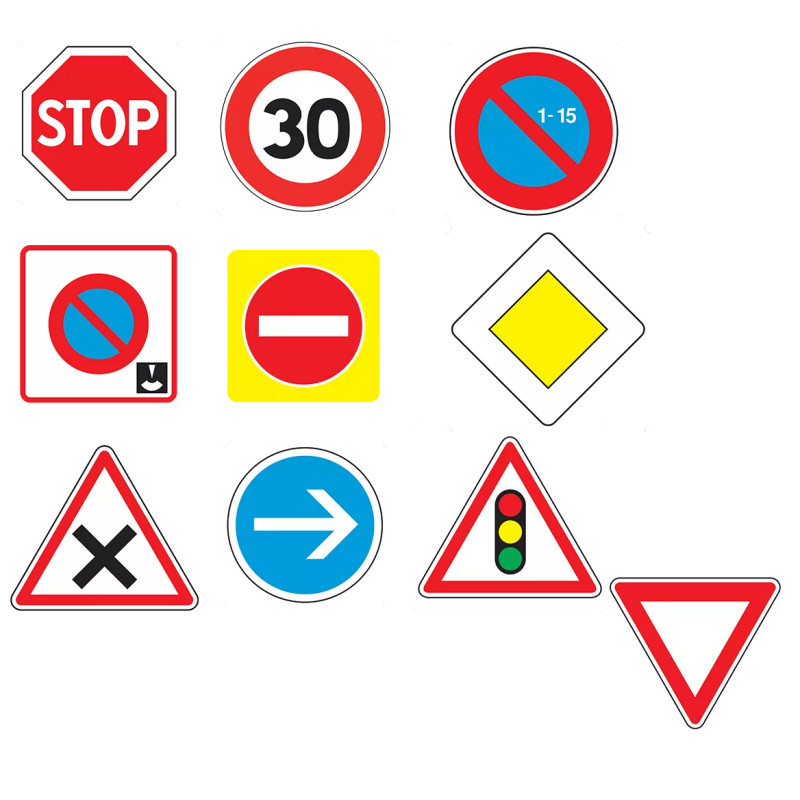 Pochette contenant 10 panneaux d’affichage vitrine pour auto-école.