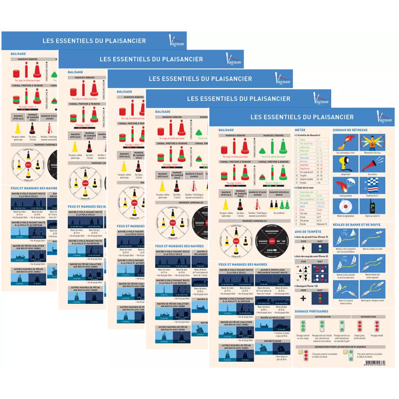 La planche adhésive Les essentiels du plaisancier regroupe les rappels visuels de sécurité, manœuvres et signaux à bord d’un bateau.