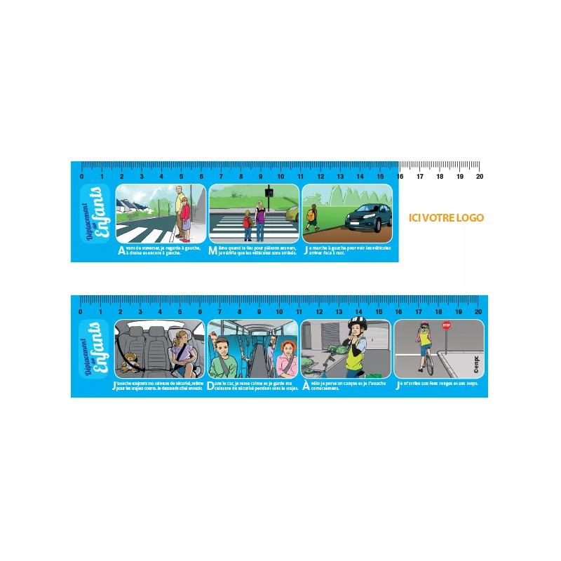 La règle déplacement enfant personnalisable allie utilité et prévention. Elle illustre les bons comportements sur la route, à pied ou à vélo, et peut être personnalisée à votre image pour vos actions éducatives.