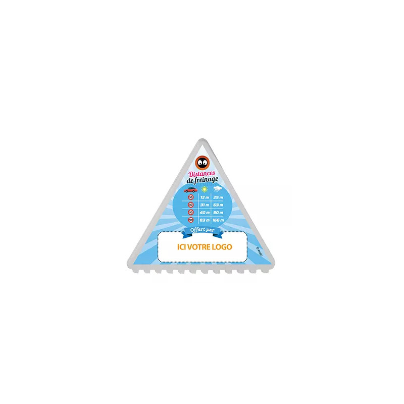 Grattoir triangulaire personnalisé sur le thème des distances de freinage.