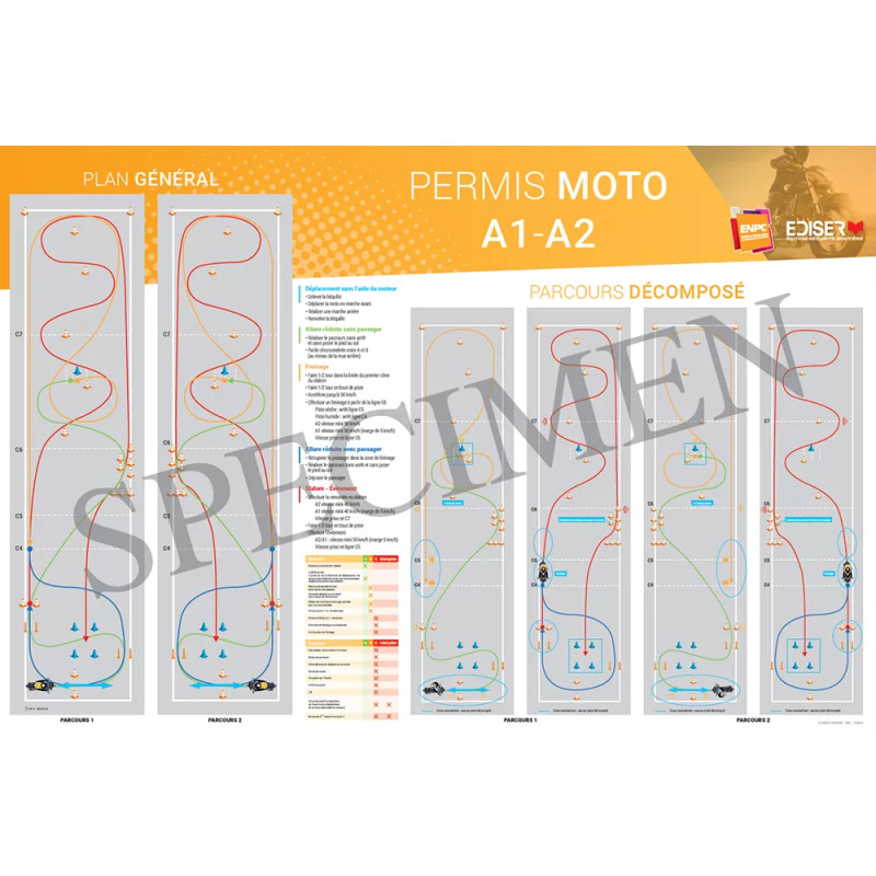 Carte murale indispensable pour visualiser les parcours de maniabilité moto lors de l’apprentissage du permis. Outil essentiel pour les écoles de conduite.